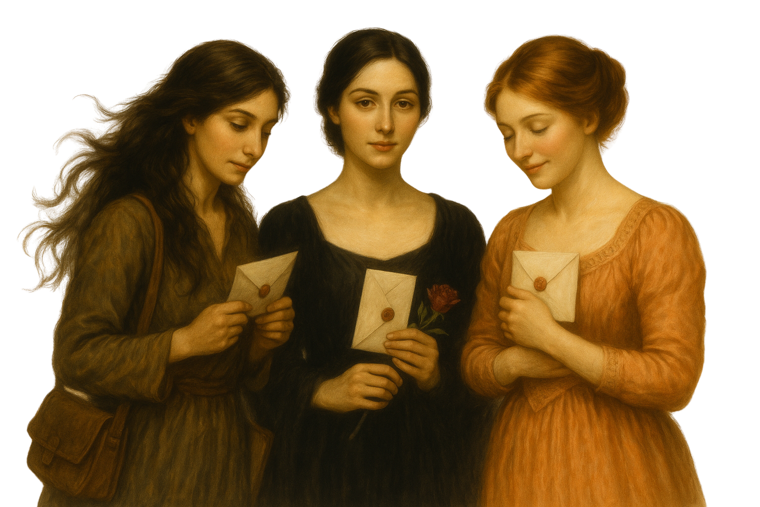 Handwritten-style letters sealed in wax — romantic, quiet, and personal.